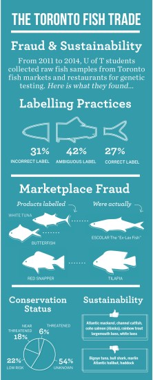 During my time teaching EEB 382, I implemented a multi-year citizen science project on the mislabelling of fish in the Toronto fish trade. Students collected samples from restaurants and grocers and compared the label to the identity determined using DNA barcoding, and wrote a report analyzing the rate of mislabelling and conservation concerns from across the class dataset. This project gave the students hands-on experience with a real world problem in fish biology. Students were often shocked by the results for their sample (especially for mislabelled samples of escolar, the “ex-lax” fish). The results of several years of this project were recently highlighted in an issue of the ROM magazine.